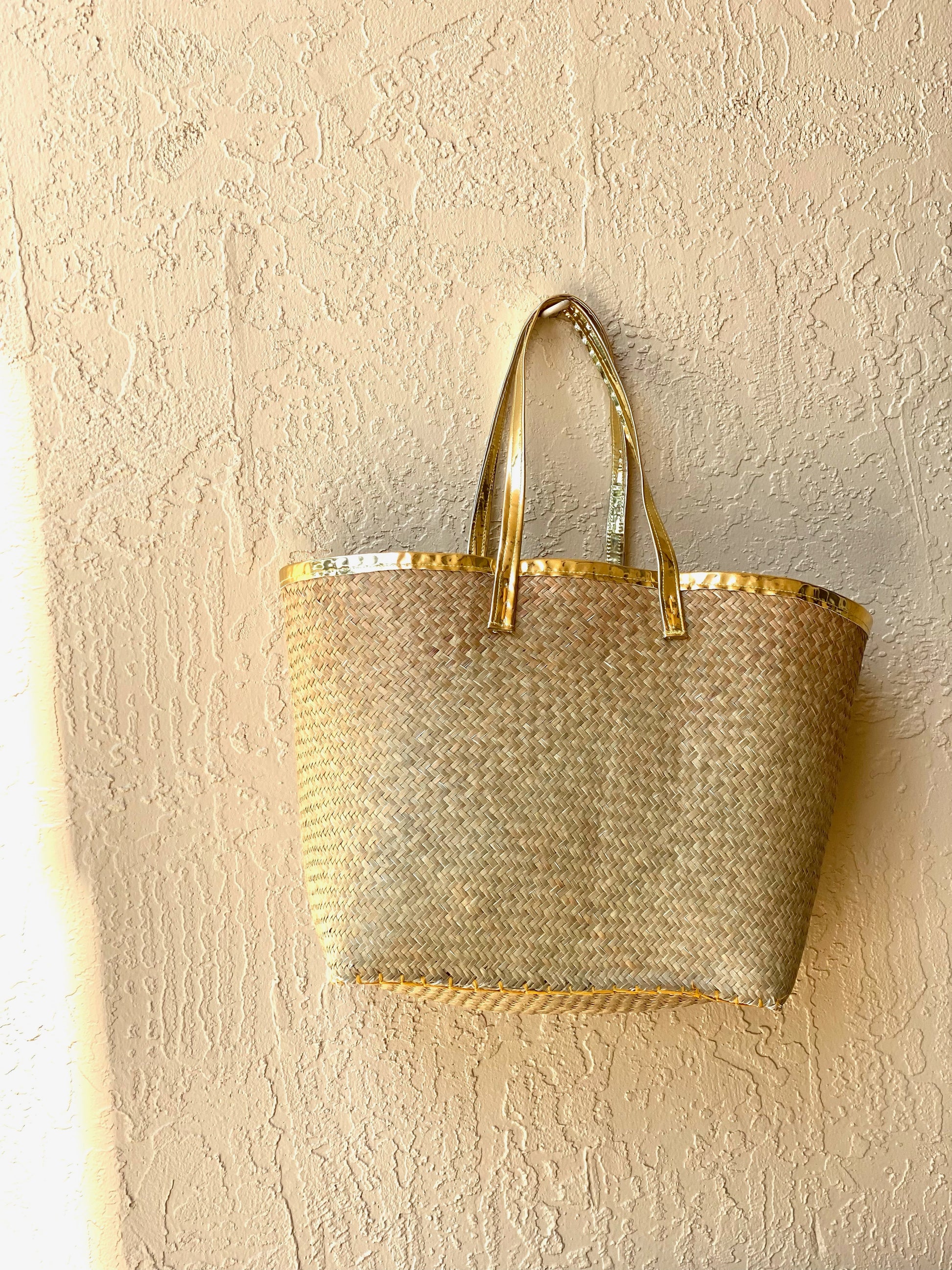 Raffia and Gold Beach Bag